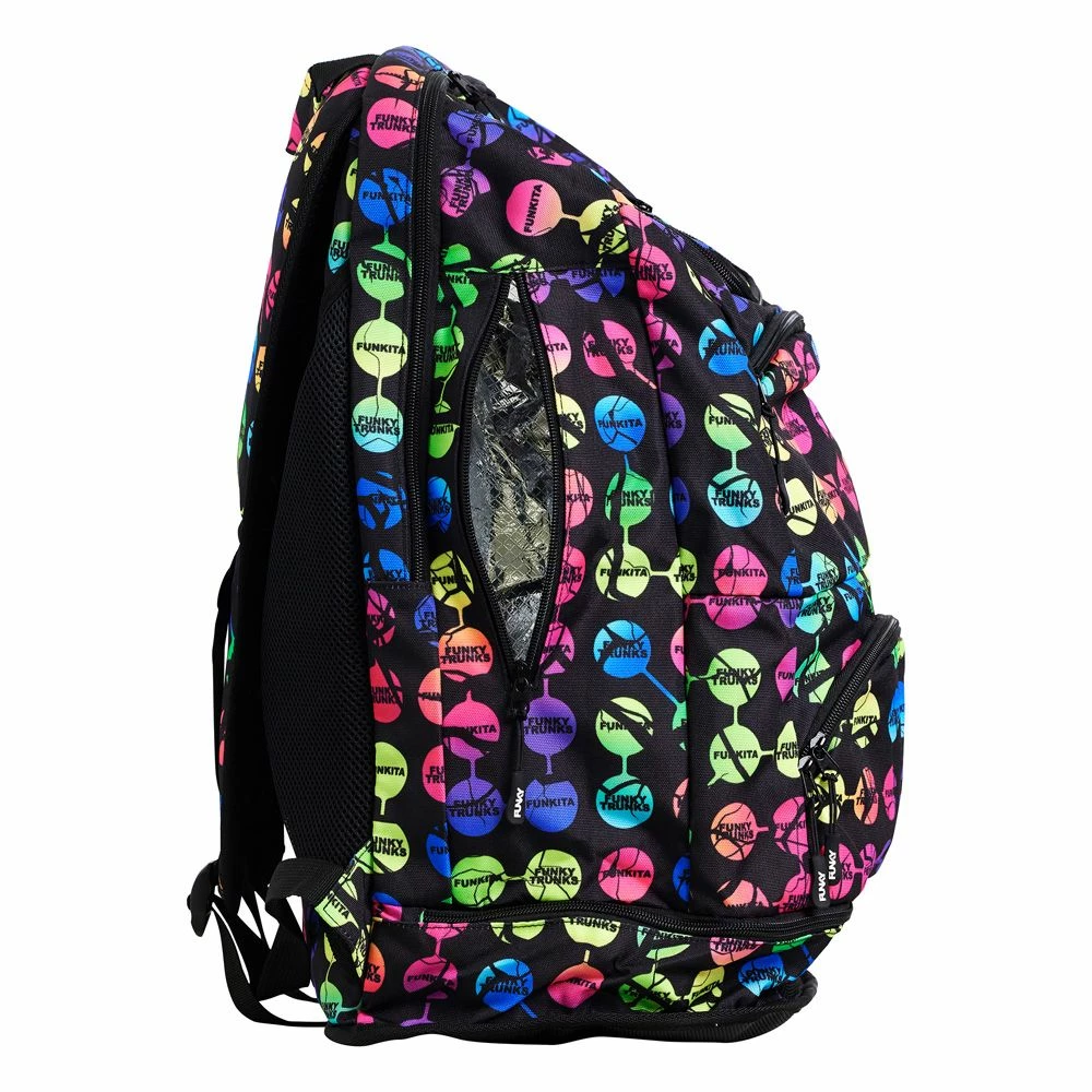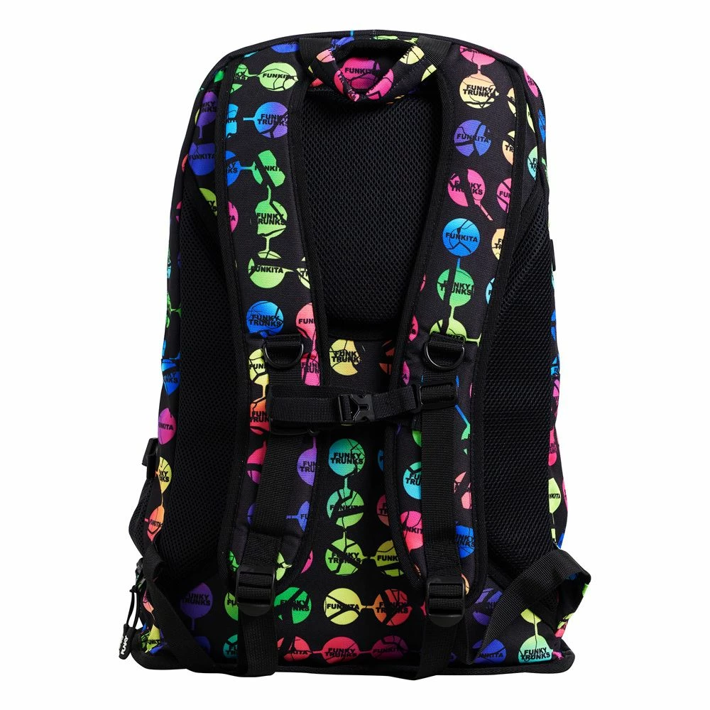 The ultimate backpack for training and competition. Up to 36L capacity with multiple segments including fabric-lined goggles compartment, waterproof base compartment for shoes and wet towels. Mesh compartment and cooler bag zip pocket to keep drinks and food cool. Large main section with laptop pocket. Comfortable padded back panel and shoulder straps with chest strap for postural support.