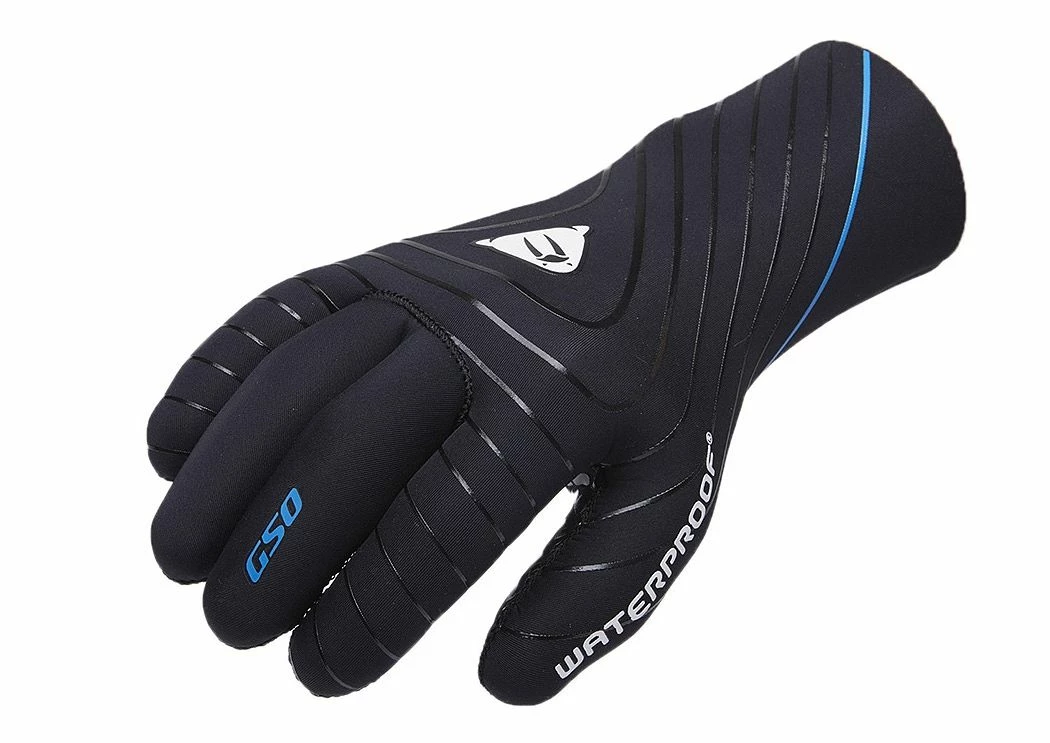 Waterproof G50 5mm Glove are a cool looking wet glove in 5mm superstretch neoprene. Quality, soft comfortable neoprene with pre-bent fingers for great fit. Glued and blind stitched for strength and anti-slip palm for extra grip.