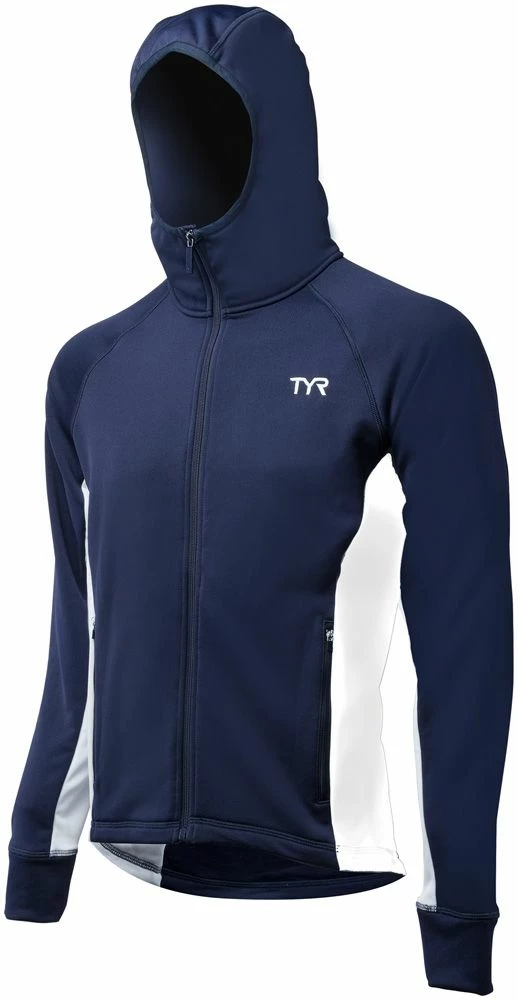 Offering breathability and 360 degree range of motion, this zip-up provides an added layer of coverage for cooler conditions pre/post workout. With a hood and convenient zipper pocket storage, the TYR Men’s Alliance Victory Warm Up Jacket is designed for guys on the go.