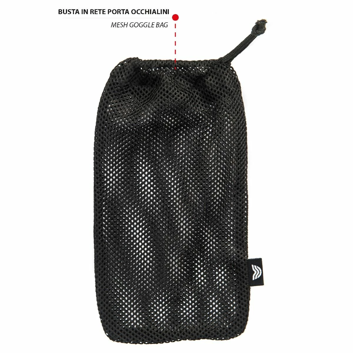 Ground-breaking design and materials, for top-level performance, both in the pool and in open waters. The curved lens frame provides optimal hydrodynamic efficiency. The TPR gasket ensures a snug fit, comfort and firmness. The REVO lenses allow both the details and the colour contrast to be emphasized. The headband is easy to adjust and hold in place, with the secure adjust system. Interchangeable nose pieces for customized nose bridge adjustment.