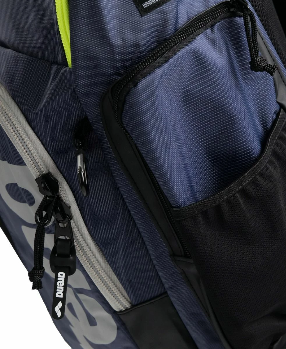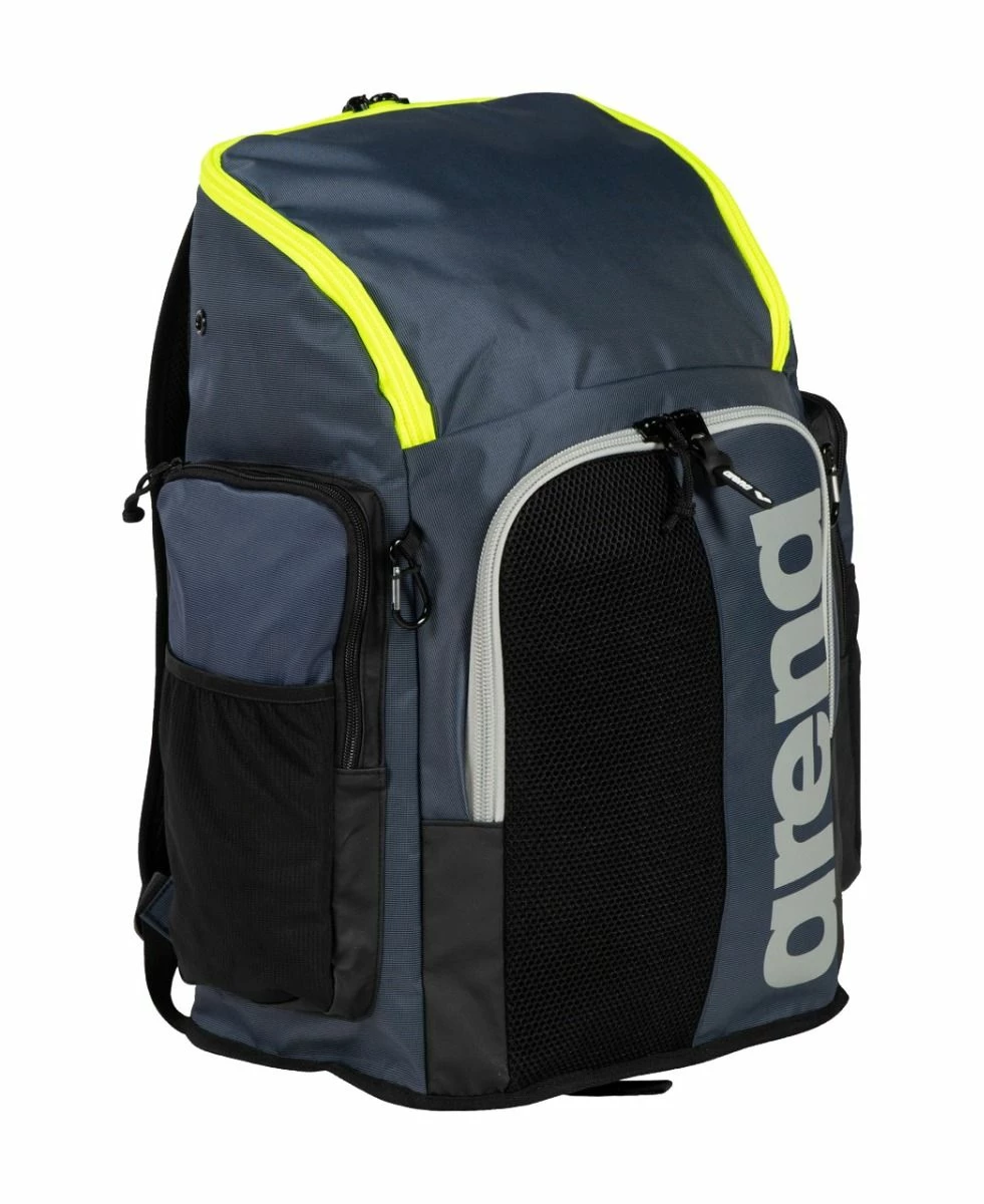 The sporty arena Backpack Spiky III 45L is ideal for carrying training gear or for school and leisure time. Equipped with water repellent bottom to protect your belongings. Two roomy main compartments and a front zip pocket offer excellent storage options. The additional mesh side pockets are perfect for water bottles or other gear. Breathable mesh inserts, the breathable back panel and adjustable padded shoulder straps guarantee outstanding comfort.