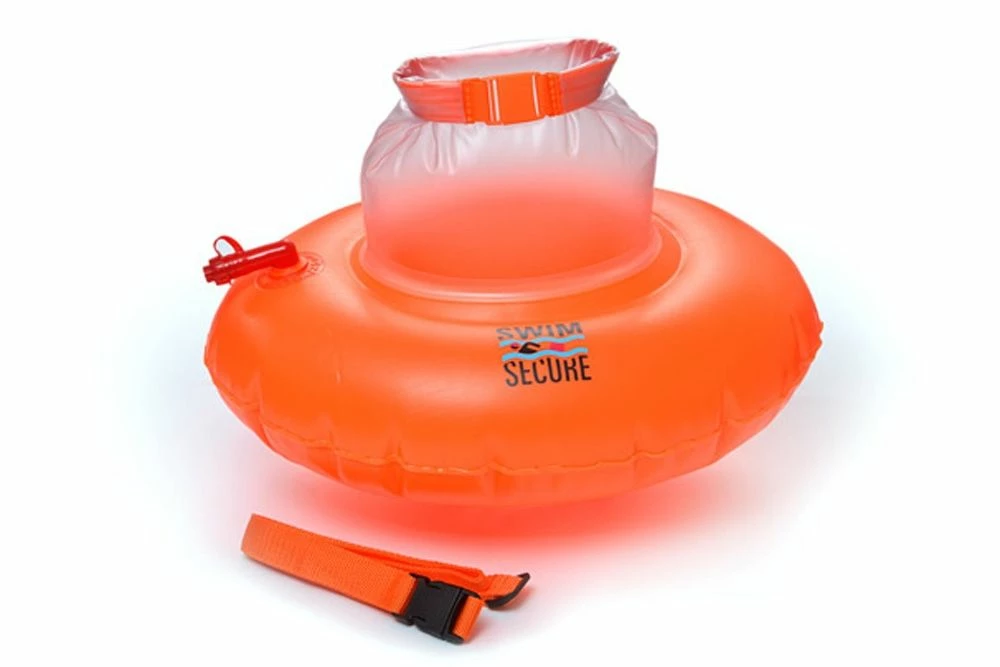 The Swim Secure Tow Donut is a highly visible, buoyant, tow float with waist strap and an integrated small dry bag pouch. The small dry bag sits in the centre of the float, out of the water, and is perfect for small items such as car keys and phones that you don’t want to leave on the shore whilst swimming.